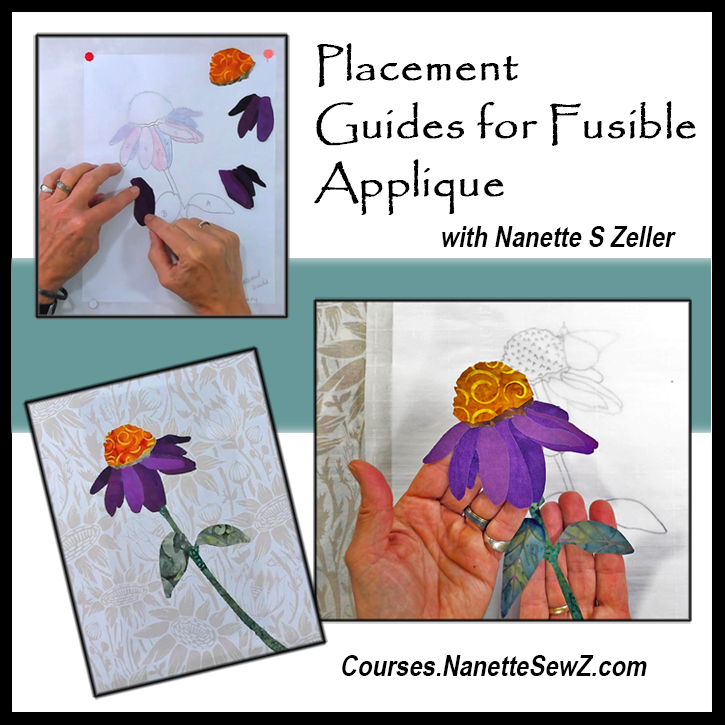 Creating fusible applique can be messy. Unlike traditional applique, we apply an adhesive to the back of our fabrics and fuse them to our quilts. One misplaced applique piece could be a disaster. Using a placement guide to construct our applique designs can eliminate a lot of frustration, allowing us to assemble the motifs and audition them on our quilts before making the final fuse. In this course, Nanette will show you how to use Placement Guides for Applique to construct your applique designs. They allow you to assemble your motifs and audition them on your quilts before making the final fuse. Join me in this short tutorial course to learn my techniques for using placement guides for fusible applique quilts. FREE PATTERN INCLUDED!